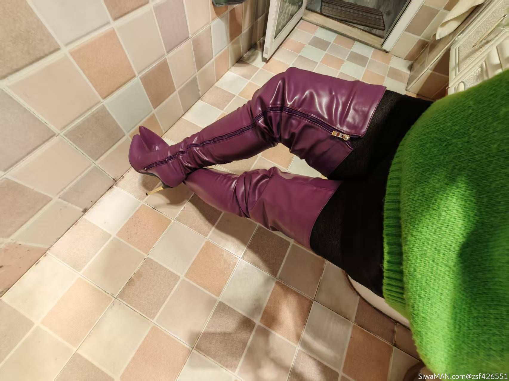 黑色短裙i紫色及臀靴