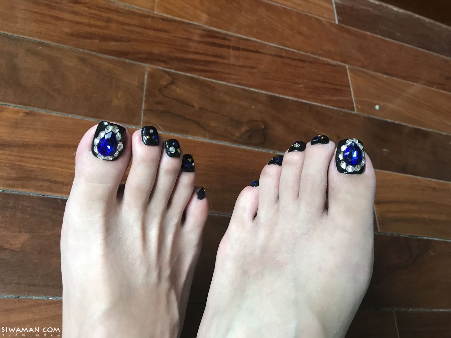[甲片延长] 脚趾甲片,黑底蓝色水滴钻[3P]